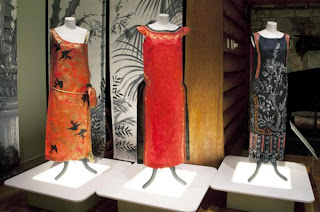 Some costumes were placed in the rooms at Hillwood. In some cases, an outfit was inspired by the decor of the room or a painting hanging on the wall, almost as if it jumped off the canvas.